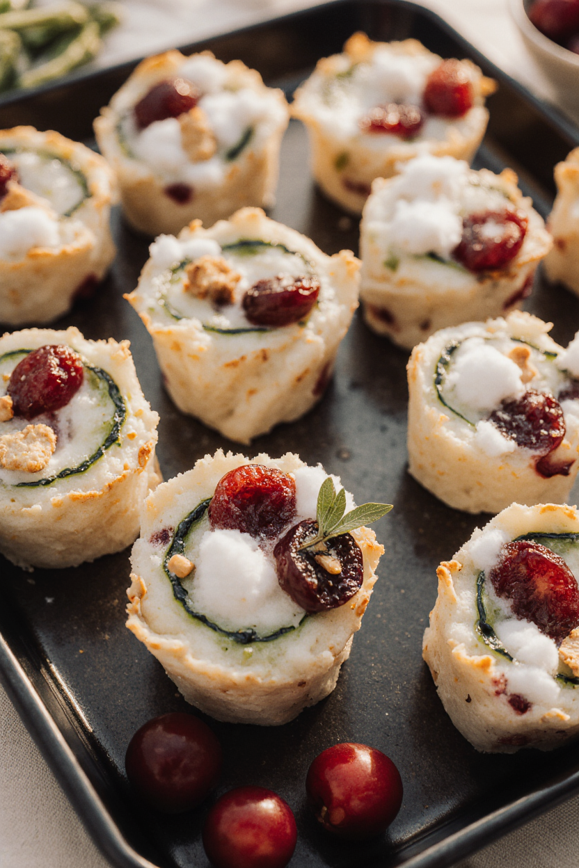 - Warm servierter Brie: Ein geschmolzener Brie mit einer Preiselbeersauce bietet eine süße, samtige Ergänzung zu den Roll-Ups.